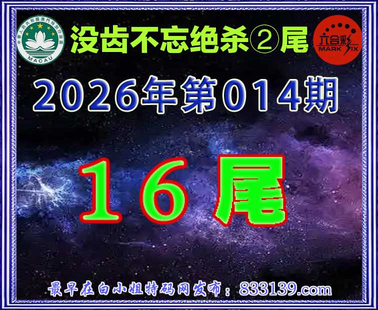 014期:【没齿不忘】 绝杀②尾【1.6】开:26